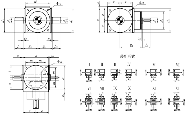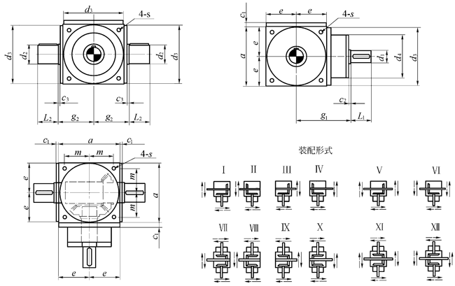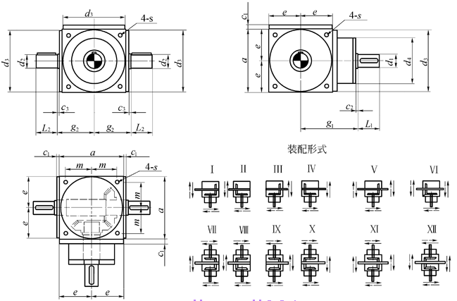 SPV型轉(zhuǎn)向箱的外形和尺寸(輸出軸加強型):
