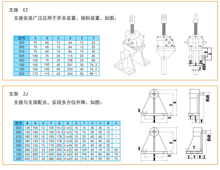 絲桿升降機支座和支架的安裝示意