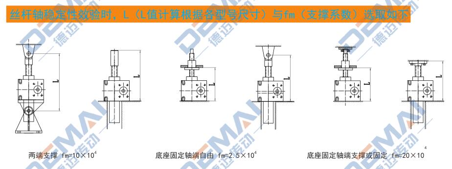 絲桿升降機在選型過程中,不僅需要考慮行程,負責,速度,側向力等等數據做參考,同時還要根據客戶方的具體使用環(huán)境,來考慮絲桿軸穩(wěn)定性和絲桿軸轉速效驗,這樣才能使升降機在使用過程中不會出現(xiàn)問題。具體系數的選取如下圖。